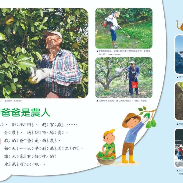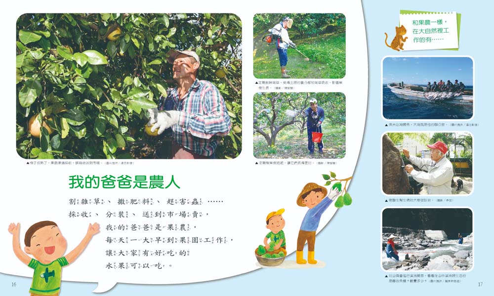 - 圖、文、照片並茂,給孩子不同的觀察角度;多元的插畫風格,拓展孩子的美感視野。