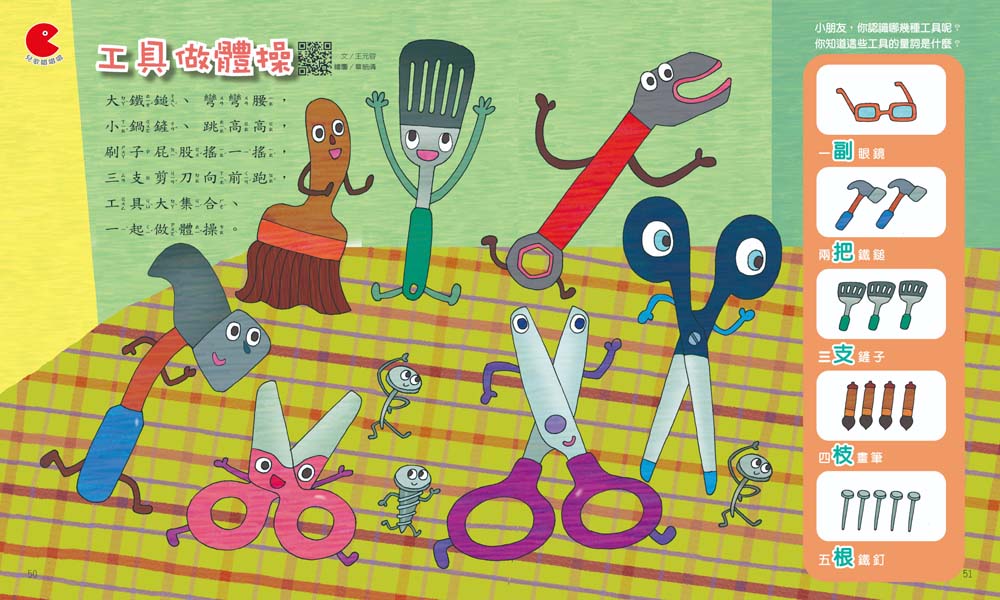 - 臺語兒歌:由知名兒童文學家撰寫,讓孩子接觸不同語文,拓展生活經驗。